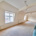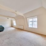 The reception room is a spacious area stretching to a maximum of 25'11 by 13'7. It boasts two large windows that fill the room with natural light, complemented by light-coloured walls and carpeting that add to the room's warmth. The room's generous proportions offer plenty of space for both relaxing and entertaining.