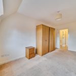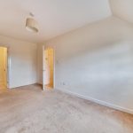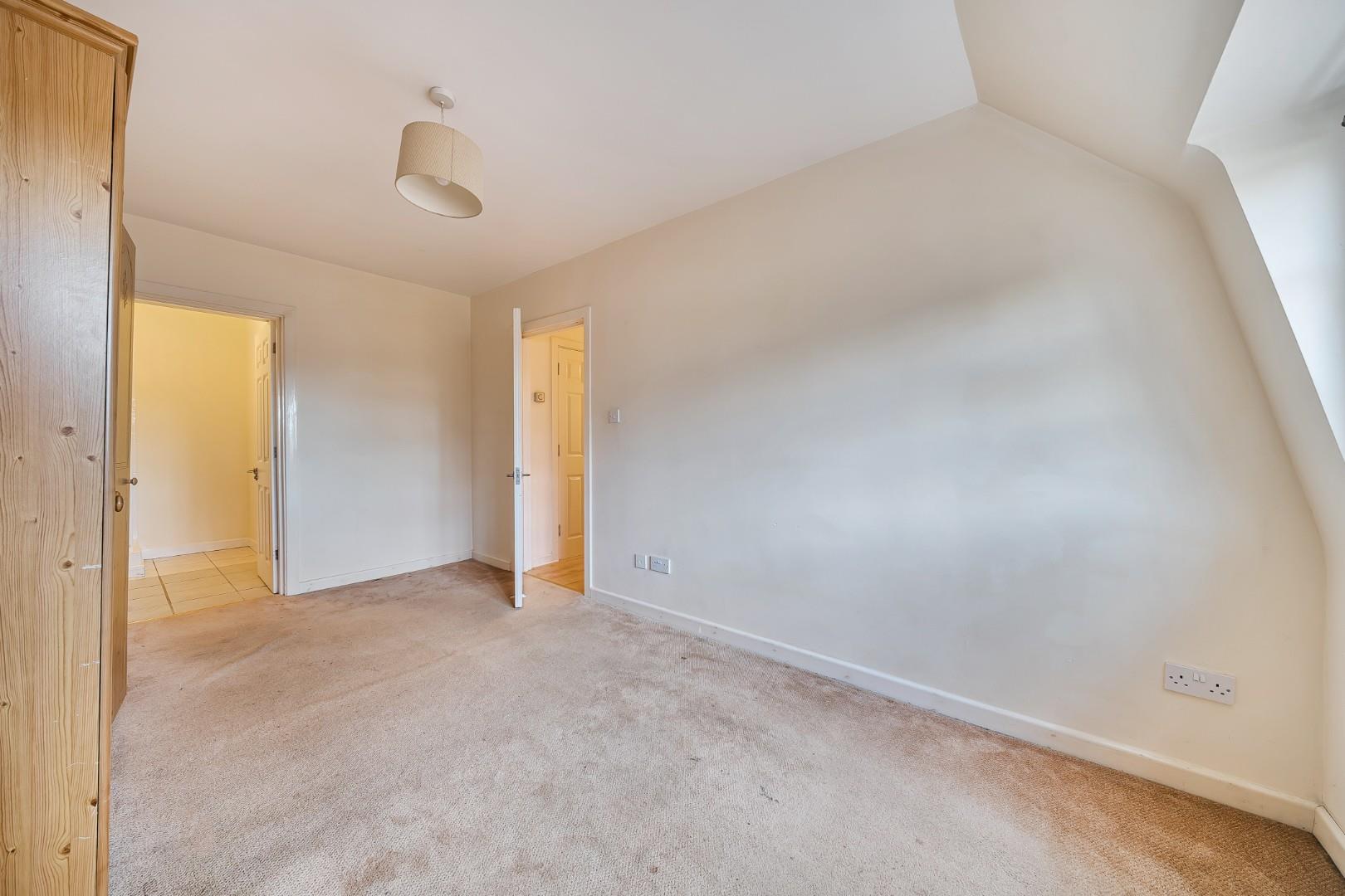 The master bedroom offers a tranquil retreat with its generous length and large window allowing plenty of daylight to fill the room. The soft carpet underfoot and neutral walls create a restful environment, while the adjacent ensuite provides privacy and convenience with a shower, sink, and WC.