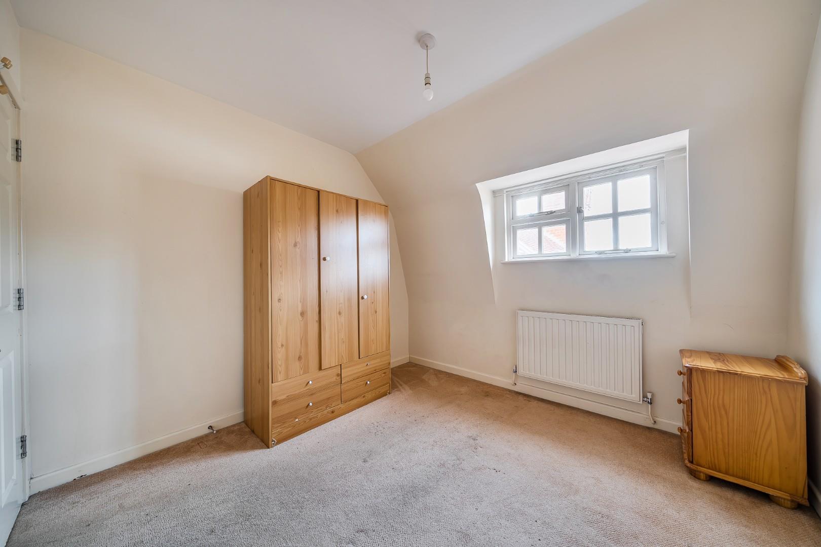 This second bedroom is a cosy and bright space, well suited for use as a guest room or home office. It features neutral decor and soft carpeting, with a large window that ensures the room is well-lit throughout the day.