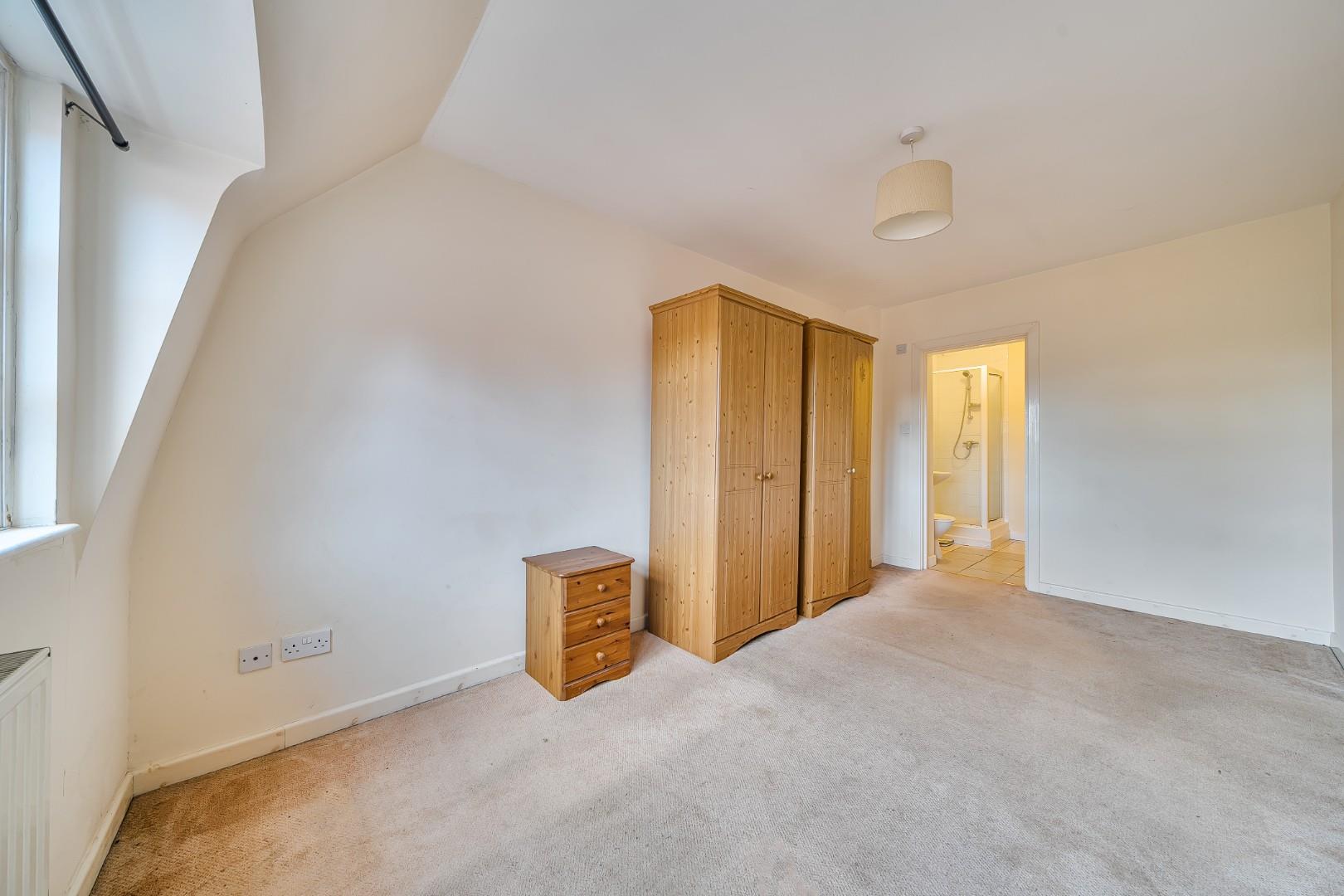 Bedroom 1 offers a comfortable retreat measuring 15'8 by 9'1, with a neutral decor scheme that allows for personal styling. This bedroom benefits from an en-suite shower room with a corner shower, pedestal basin, and WC, all presented in light tones and tiled flooring for ease of maintenance.