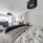 A generously sized reception room measuring 19'9" into the bay by 10'11". The room benefits from a large bay window that floods the space with natural light. It offers a versatile living space that could accommodate comfortable seating and various furniture arrangements. The room features neutral decor and carpeted flooring.