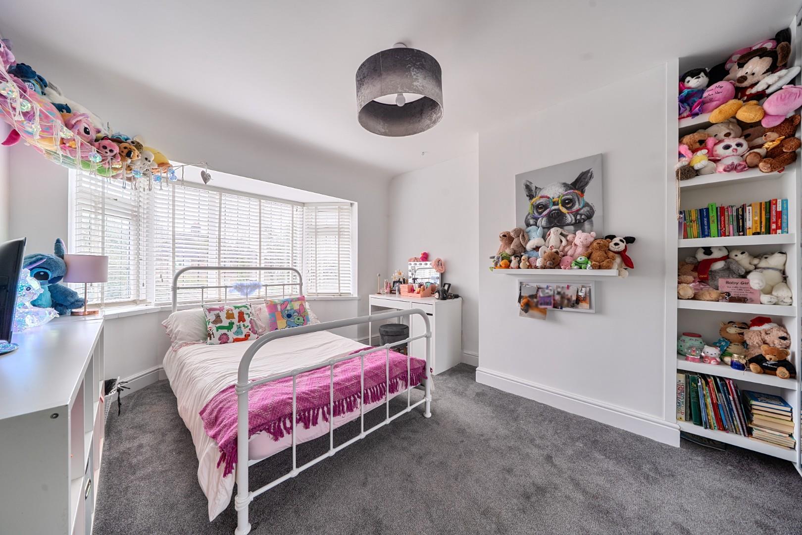 Bedroom 3 measures 10'7" by 8'9" and offers a comfortable space with neutral decor and carpeted flooring. It benefits from a window providing daylight and a pleasant aspect.
