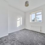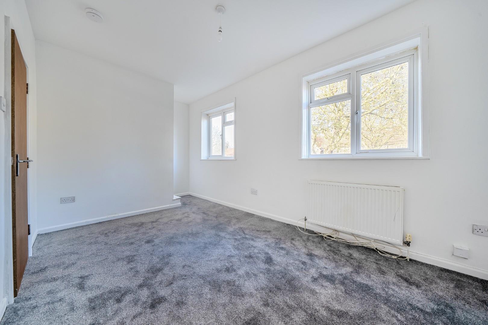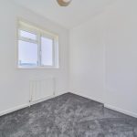 Bedroom 2 is a comfortable double room with a window providing natural light. It has neutral decor with grey carpeting, creating a calm and relaxing atmosphere suitable for a guest room or home office.