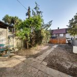 The garden extends a generous 13.75 metres in length, providing a private outdoor space that is mostly laid to soil with a paved pathway down the centre. This area presents a blank canvas for gardening enthusiasts or those wishing to create an outdoor seating and entertaining area, surrounded by mature trees and fencing for privacy.