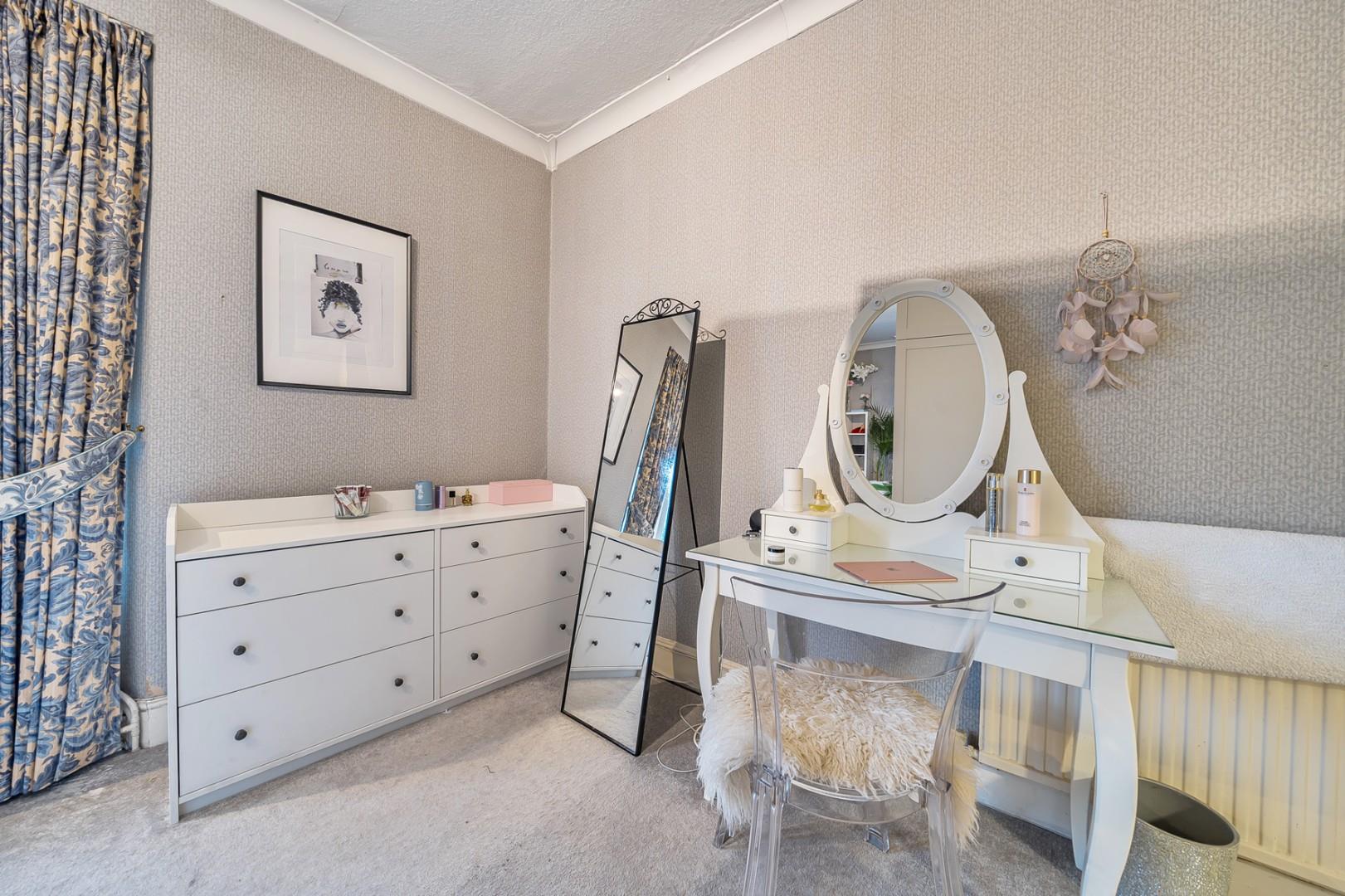 This well-proportioned second bedroom benefits from plentiful natural light through a large window. The room is decorated in soft neutral tones with carpet underfoot, creating a cosy and inviting environment. It offers sufficient space for a double bed and additional bedroom furniture, ideal for family or guests.
