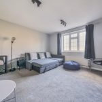 This smaller bedroom or office space is set to one side with a window overlooking the garden. It is decorated neutrally, making it suitable for a flexible use as a bedroom, study or home office. The compact size and natural light create a cosy and functional space.