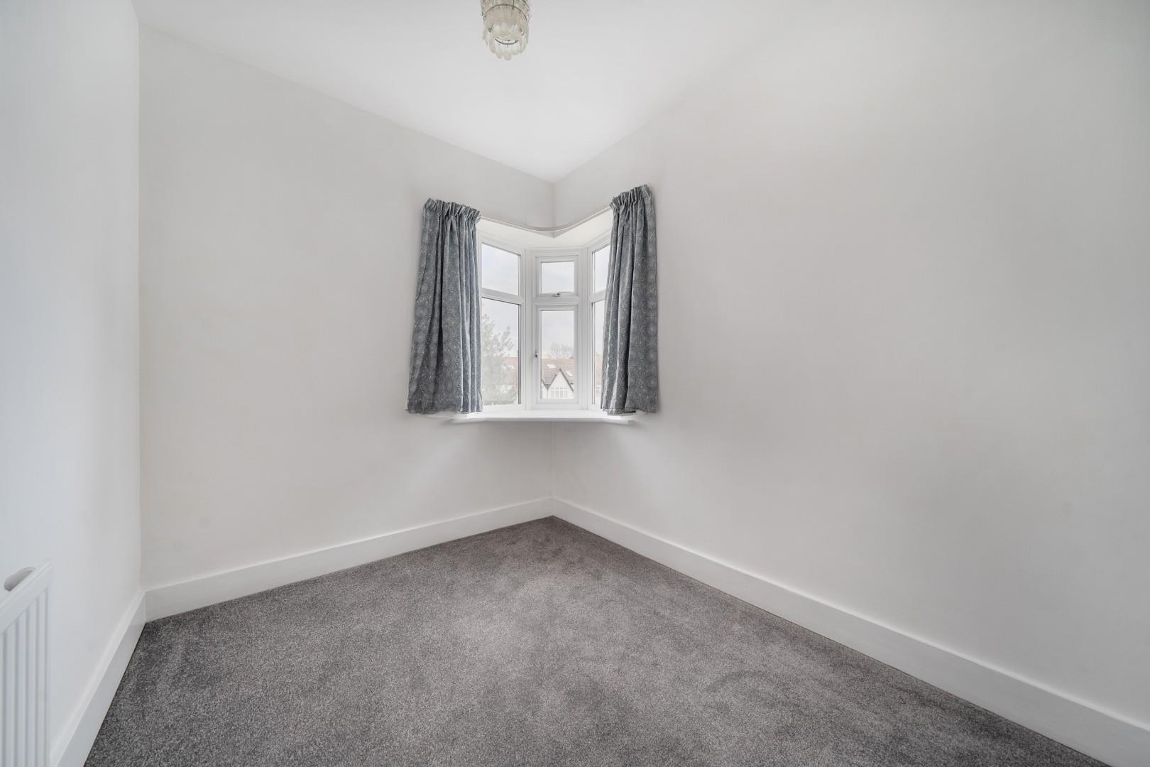The smallest bedroom is set to the front of the property, featuring a corner window that allows natural light to fill the room. It is a cosy and bright space, perfect for a child's bedroom or a study.