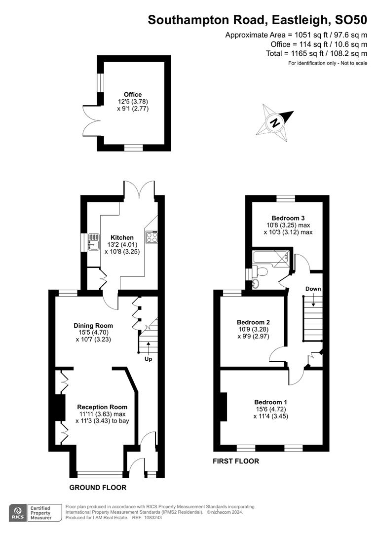 Outside, the rear garden offers a combination of a paved patio area and lawn, providing a pleasant outdoor space for relaxing or entertaining. At the end of the garden, there is a detached office space measuring approximately 12'5 by 9'1, ideal for working from home or as a hobby room.